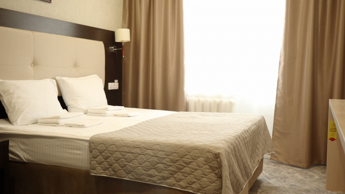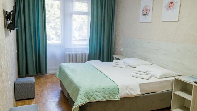 Дополнительное преимущество: в номере есть холодильник, телевизор, фен, туалетные принадлежности и полотенца.